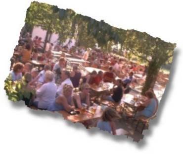 unter schattigen Bäumen. Die Bedienung ist schnell und freundlich. Zum Essen gibt es verschiedene und günstige Brotzeiten, wozu